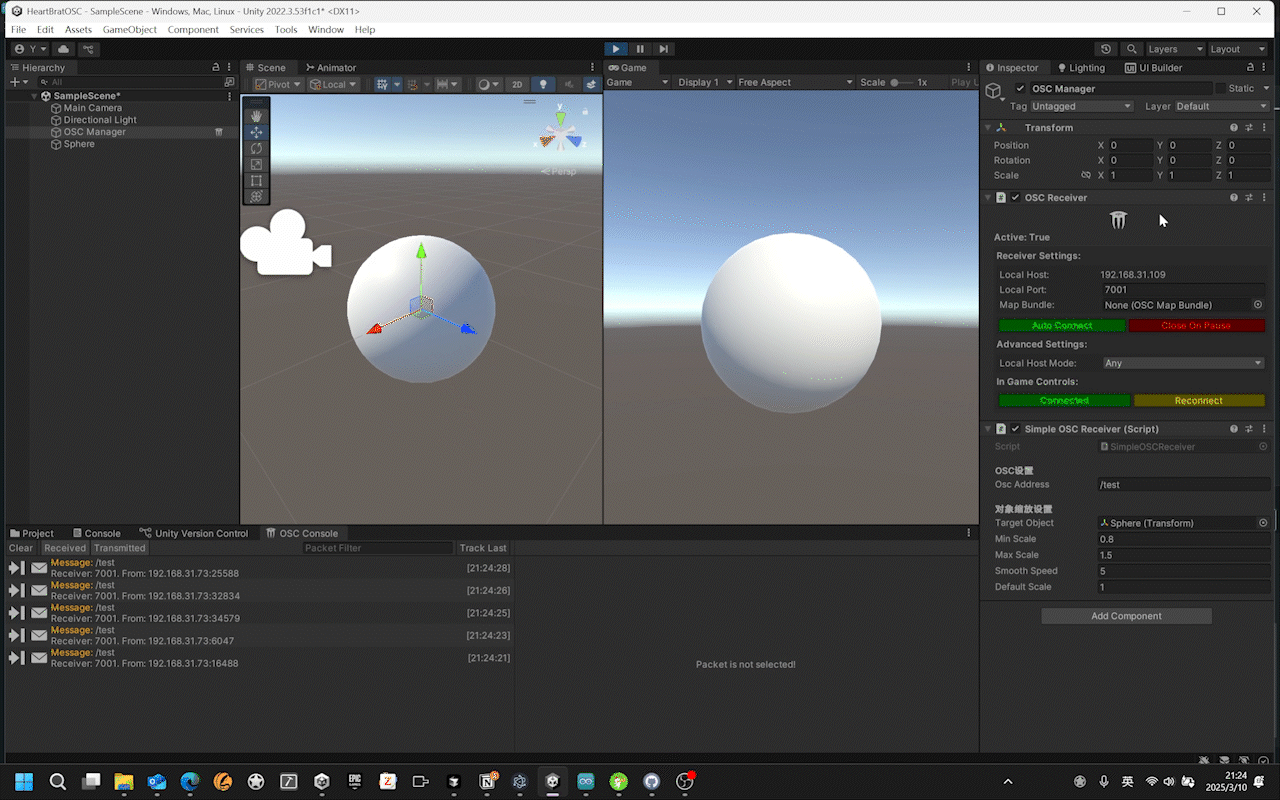 This project tackles the fundamental challenge of establishing seamless communication between an Arduino, ESP01S Wi-Fi module, and Unity using the Open Sound Control (OSC) protocol.