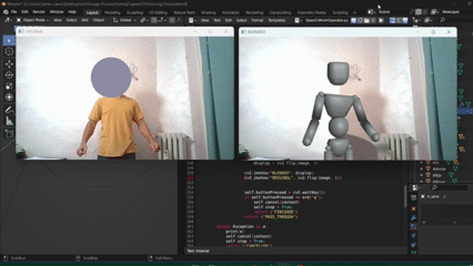 This project implements a real-time motion capture system in Blender using computer vision and machine learning. The goal is to recognize the body pose of a subject through a webcam and animate a 3D avatar in real-time, replacing the human subject in the video stream with a rendered digital character..
