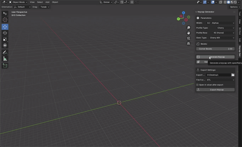 Blender add-on for procedurally generating keycaps. Intended to generate base models for artisan keycap modeling + 3D printing