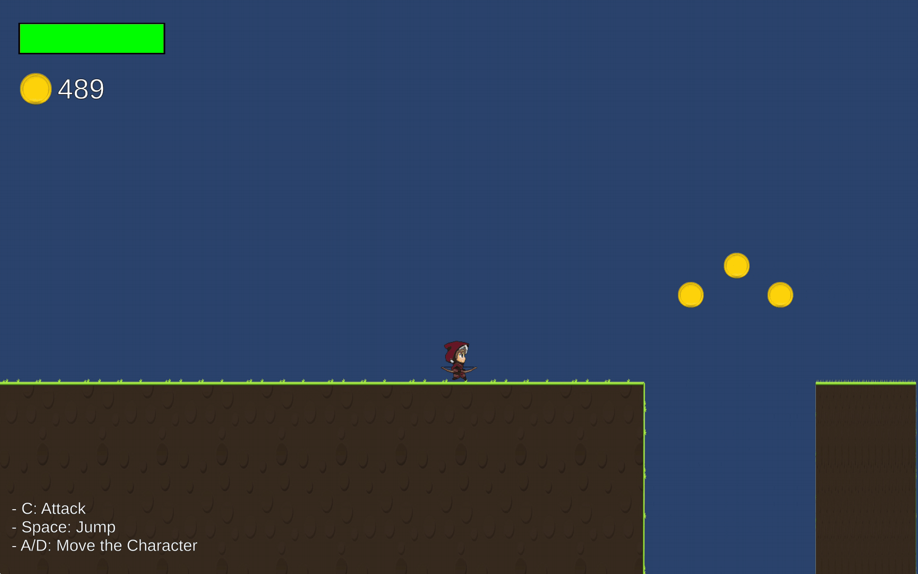 Базовая 2D-игра, где игрок управляет персонажем, перемещается по уровню, взаимодействует с объектами и побеждает врагов.