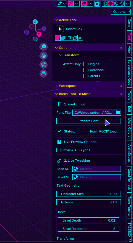 BatchFont2Mesh (BF2M) is a WIP Blender addon designed to streamline the procedural generation of 3D text meshes from font files. It provides an efficient, UI-driven workflow for creating, processing, and organizing large sets of characters.