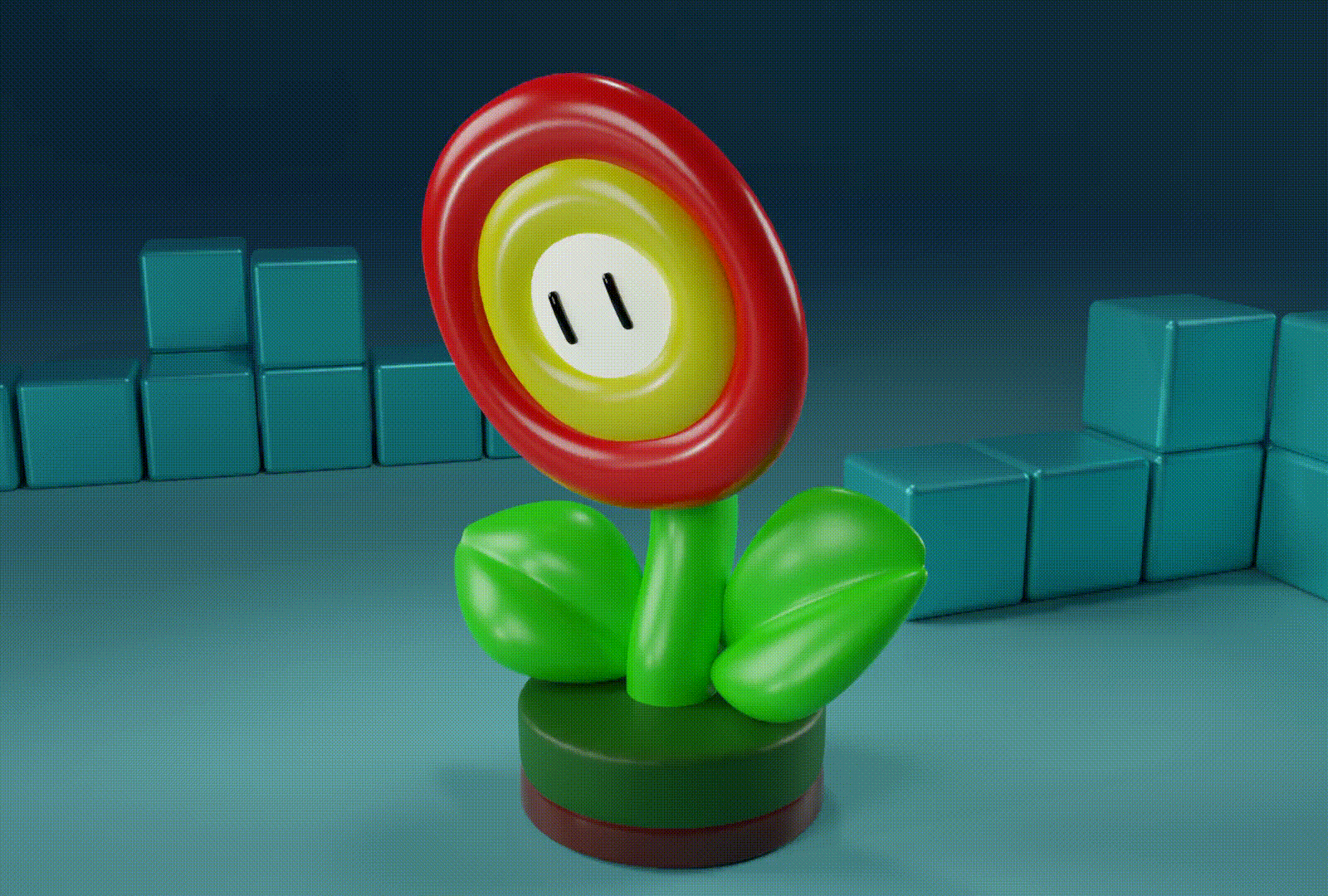 A collection of Blender-made Mario item animations, showcasing modeling, materials, lighting, and lattice-based animation techniques.