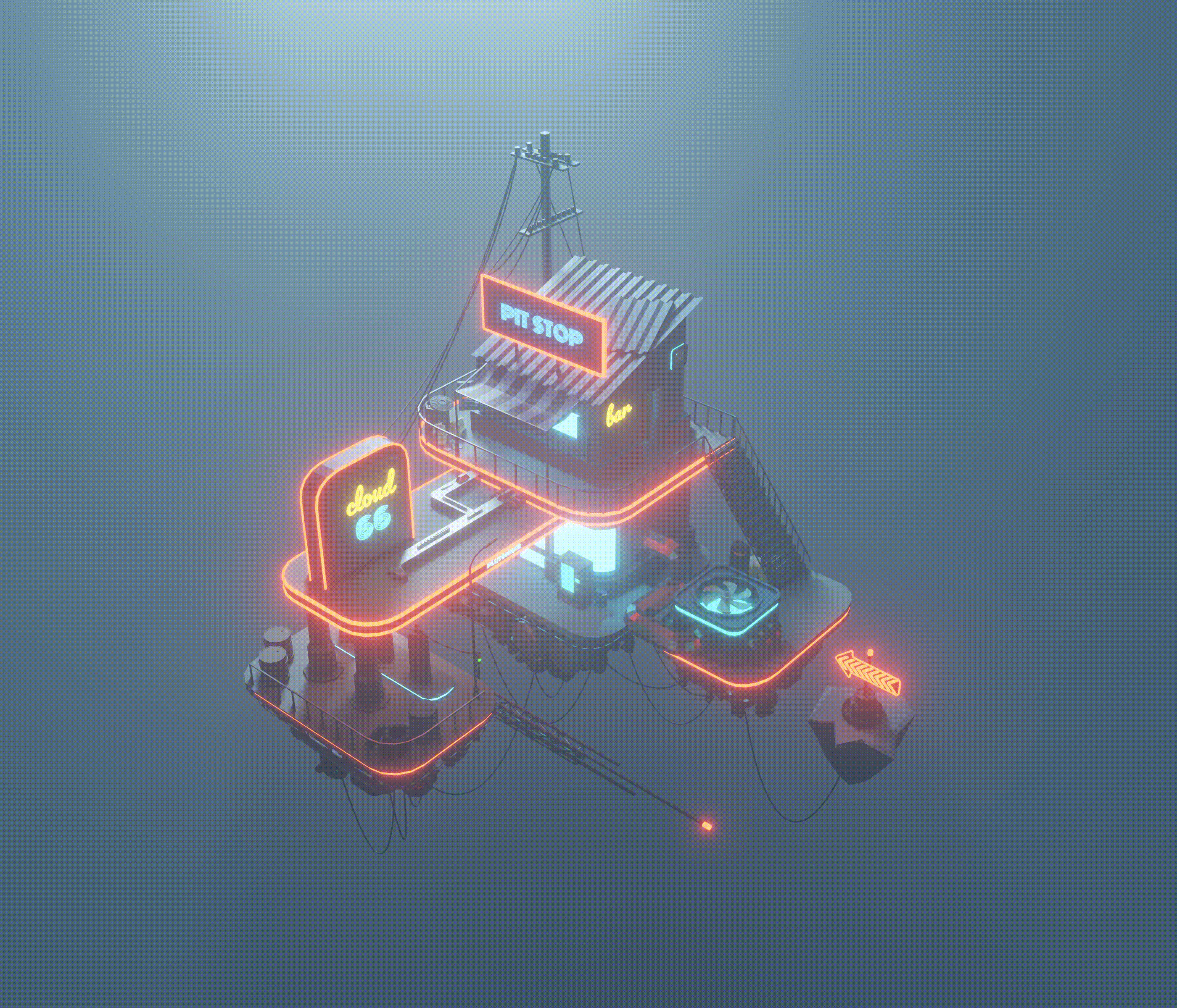 low-poly 3d-scene animation car gas-station sky fuel game-asset blender vehicle floating stylized